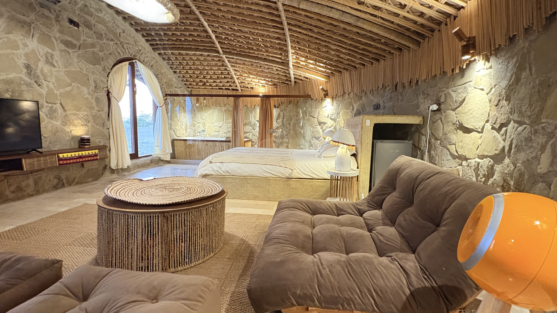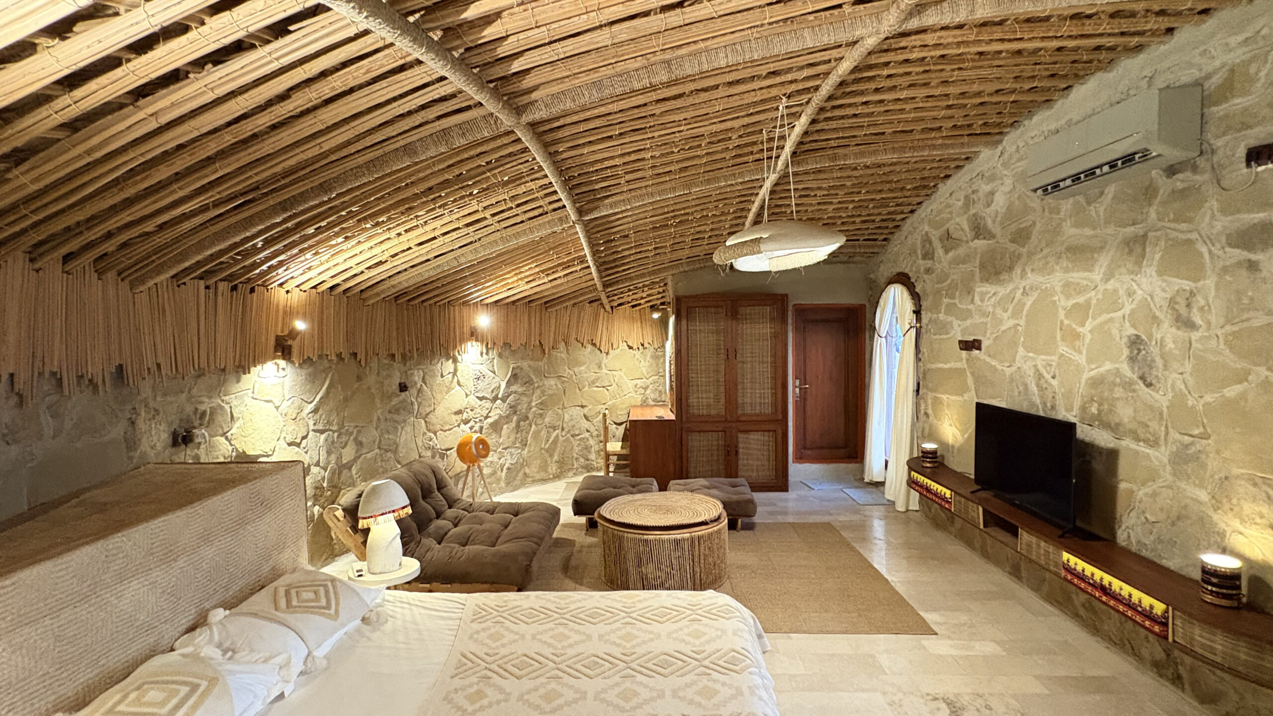 اتاق خصوصی اقامتگاه بومگردی دیدگ در روستای زیبای درک چابهار، فضایی دنج، آرام و کاملاً مناسب برای زوجها، خانوادهها و گروههای کوچک فراهم کرده است. این اتاق با مساحت ۳۷ متر مربع، بهصورت استاندارد برای ۲ نفر طراحی شده و امکان اضافه کردن نفر اضافه تا مجموع ۵ نفر را نیز دارد. یک تخت دو نفره راحت بههمراه مبل تختخوابشو دو نفره، شرایط اقامتی انعطافپذیر و آسودهای را ایجاد میکند.